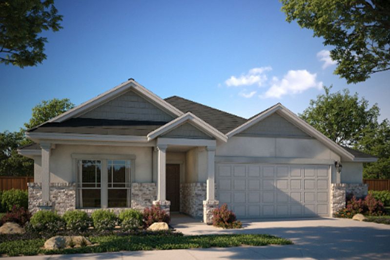 Welcome to the spacious single story of your dreams! This open and welcoming home greets you with tall ceilings, a grand rotunda and tons of natural light. The owner's suite features a large walk-in closet and extended shower and is separate from the additional bedrooms. 3 car garage. Upgraded 42" cabinetry, quartz countertops, beautiful LVP floors, and subway tile backsplash complete this forever home floorplan. Access to resort style Crosswinds amenity center with swimming pool, splash park, sport court, dog park, trails and more!