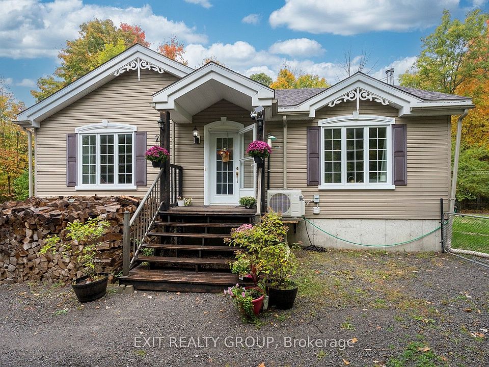 Welcome to 143 Douglas Road. This prefabricated home, set on a beautifully landscaped 2-acre lot - perfect for those seeking peace, privacy, and pride of ownership. This well maintained property offers everything you need for comfortable country living: a drilled well, septic system, 200-amp service, ductless AC, central vacuum, and a cozy Pacific Energy wood stove. Step outside to enjoy a 23' above-ground pool with cedar decking, a fenced backyard, multiple outbuildings, and a single-car garage. New shingles were installed in 2025 as well as new appliances in 2025. Inside, the open-concept main floor features oak hardwood flooring, rich cherry cabinets, and an oversized island - ideal for gatherings. The kitchen includes all appliances, while the newly renovated 3-piece bath boasts a walk-in shower. Convenient main-floor laundry and an aluminum sun porch overlooking the backyard add to the homes appeal. The hardwood floors were refinished in 2019. The fully finished basement extends your living space with a large rec room, an additional bedroom, utility room, and a brand-new 2-piece bath (2025). A paneled ceiling was also completed in January 2020. This home is built for efficiency with R-50 attic insulation, R-29 insulated walls, low-E argon windows, and a waterproofed foundation (2008). A battery backup sump pump provides extra peace of mind. Located less than 1 km from the scenic Heritage Trail, this property blends modern comfort with natural beauty - making it the perfect rural retreat.
