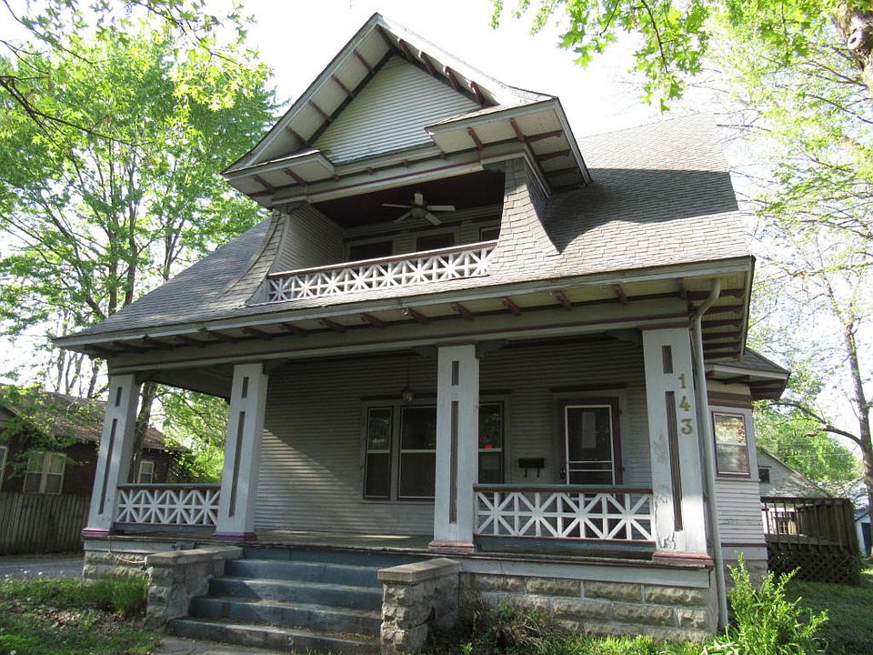Charm and character abound in this classy Craftsman masterpiece! From the oversized front porch with soaring ceilings to the wide hearth pine woodwork throughout, this is an old home lovers dream project. Step inside this largely original 1911 home and you'll find an original brick fireplace hearth in the living room, beautiful unpainted tapered column colonnade between the living and dining rooms, classic built in Mission style hutch in the dining room and a vintage kitchen complete with an island. There's also a bedroom and a half bath on the main level. Upstairs are 3 additional bedrooms, one features access to a covered balcony above the front porch. There's a spacious deck on the back of the home, several outbuildings including a native stone garage all on an oversized lot.