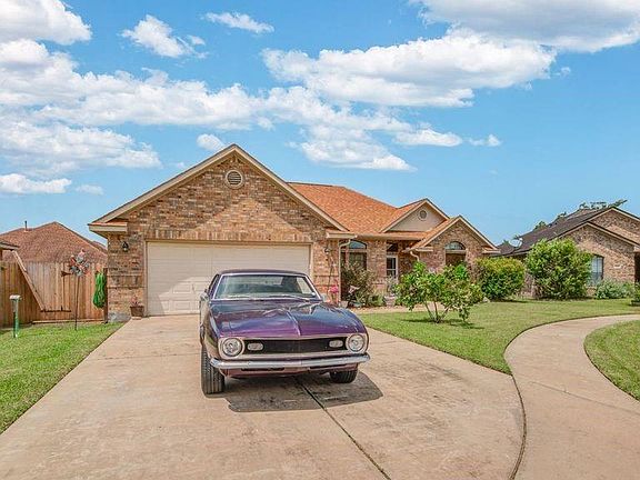 From the moment you arrive, this warm 3/2 cul-de-sac home invites you in with vibrant flower beds and a welcoming entry. Step inside to tile floors and crown molding that flow seamlessly through bright, open spaces. Sunlight pours through the living room’s picture windows, while an arched doorway reveals two cozy bedrooms with a shared bath and built-in storage. The private study with French doors is perfect for quiet work or reading. The kitchen inspires with stainless appliances, rich wood cabinets, generous counters, breakfast bar, and a sunny bay window dining nook. Retreat to the primary suite with vaulted ceilings, spa-like bath, jetted tub, glass shower, dual vanities, and walk-in closet. Evenings are made for relaxing on the screened porch, enjoying your landscaped yard with sprinkler system and storage shed. Never flooded.
