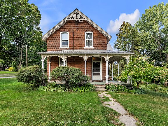 Come & sit on your veranda in this charming century house, located in the Quaint village of Stirling within walking distance of shops, grocery, bank & parks.This brick two storey 3 bedroom and 1 bath home offers 9ft ceiling on the main floor and architectural features of trim, staircase & hardwood floors. The 2 storey has been upgraded with newer windows & drywall in the bedrooms . Additional features :copper wiring, circuit breaker panel, and metal roof .The "art deco" style kitchen is functional with lots of cabinets & adjoins the original summer kitchen for additional usable space & access to the south facing deck & views of the expansive gardens and mature trees. The south & west facing veranda provides ambience, light & privacy to enjoy a cup of tea or coffee at any time of the day or evening. A bonus outbuilding offers storage or create your own studio, workshop of she/he shed. A JOY to show.