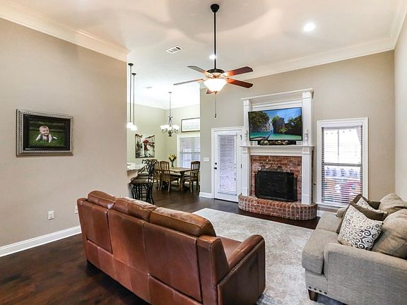 Amazing Home! Large, Convenient Corner Lot! Office! Oversized Bedrooms! Huge Screened-In Patio! Private Bay, Wired Storage in Back! Gated Community! Beautiful Wood Floors! 3D Virtual Tour Available - Be sure to click on the virtual tour link. This beautiful 4 bedroom, 3 bathroom home is nestled on a large corner lot in this convenient and quiet gated community. The circle drive and grand covered entry to this brick home leads into a small foyer just off the great room highlighted by a high ceiling and brick fireplace. The hub of the home, the great room provides access to the wonderful screened-in patio and ties nicely into the kitchen via breakfast bar and office with picture window and beautiful glass privacy doors. The office has a hall access to the kitchen as well and could be converted easily to a dining room. The kitchen comes with plenty of storage, granite counters, gas cooktop, built-in stainless steel appliances and a breakfast area overlooking the patio. Off the kitchen is the master suite featuring trey ceiling, separate walk-in closets, separate vanities, jetted tub and separate shower. The 2 oversized downstairs bedrooms and guest accessible bath are off the hall on the other side of the great room. The remaining bedroom is upstairs and situated like a bonus. However, this bedroom has a private bath and walk-in closet. The laundry room is down the hall, past the stairs from the kitchen to the 2 car garage. The screened-in patio was constructed with cypress and has a beamed ceiling, ceiling fans and enough space to become the most used living space. The large back yard comes with its own "garage" storage bay large enough for lawn and play equipment. It is also wired. This home includes a tankless water heater, security system and irrigation. Call today for your private tour.