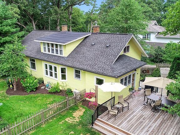 A classic Arts and Crafts home on The Hill in Saugatuck. 2 city lots creates a rare opportunity to have a tranquil side yard to enjoy, plus a large entertaining deck and beautiful landscape in back. This 3 bedroom 2 bath home has been meticulously maintained over its lifetime. The storybook front porch, enjoyed 3 seasons, looks onto an admirable planting of azaleas around the front of the home, rumored to be among the oldest and largest azaleas in Michigan. Entering further is a living room with wood burning fireplace, dining area, and an expanded kitchen suitable for the family chef, featuring stainless appliances, granite, and electric radiant heat floors. Current owners have made the upper level a large master suite. Enjoy walking to your favorite downtown Saugatuck spots, just