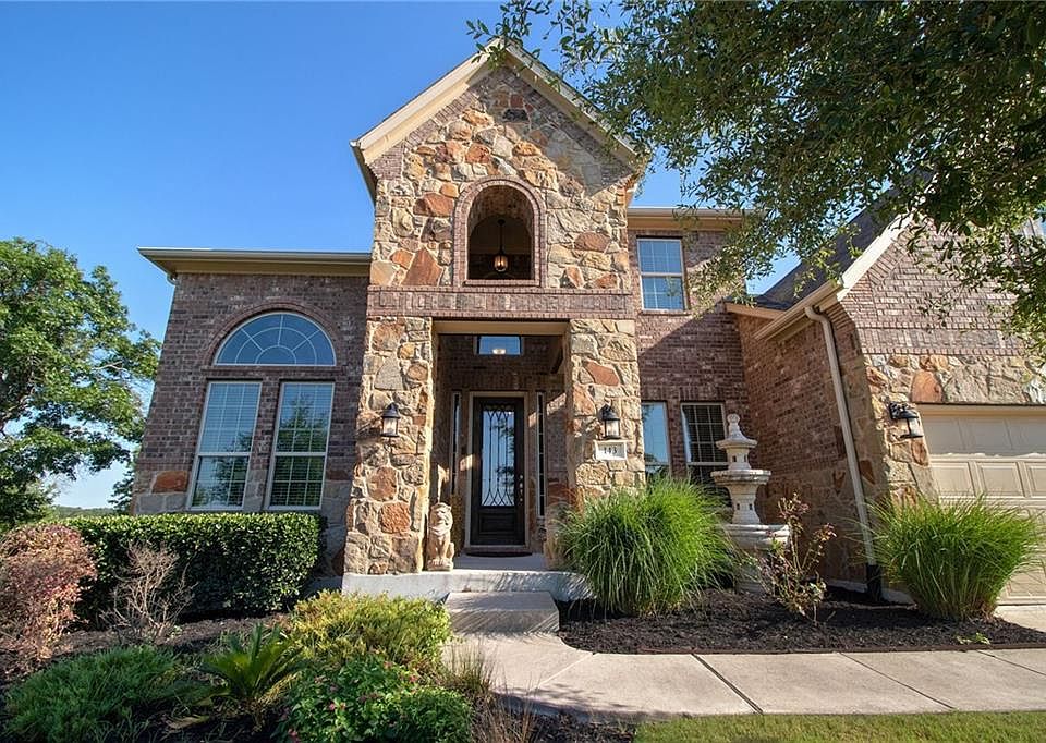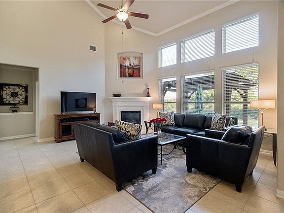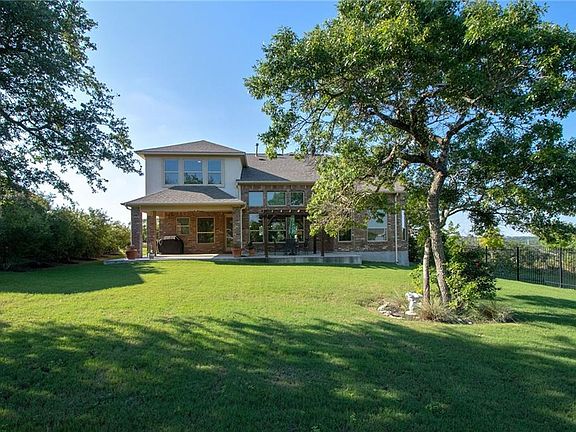 Premium corner lot w/privacy&30 mile Hill Country views! Belterra village movies, dining, shopping just 5 min away. Designer finish out, immaculately maintained! Home features include soaring/vaulted ceilings, custom storage, crown molding, gourmet kitchen, multiple living areas, stone fireplace, tons of windows&natural light, utility room w/sink/cabinets, PRIVATE Backyard w/covered patio w/fan, pergola, lush extensive landscaping, large grassy area, mature trees, wrought iron gate w/greenbelt access