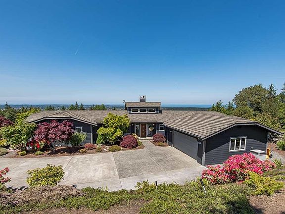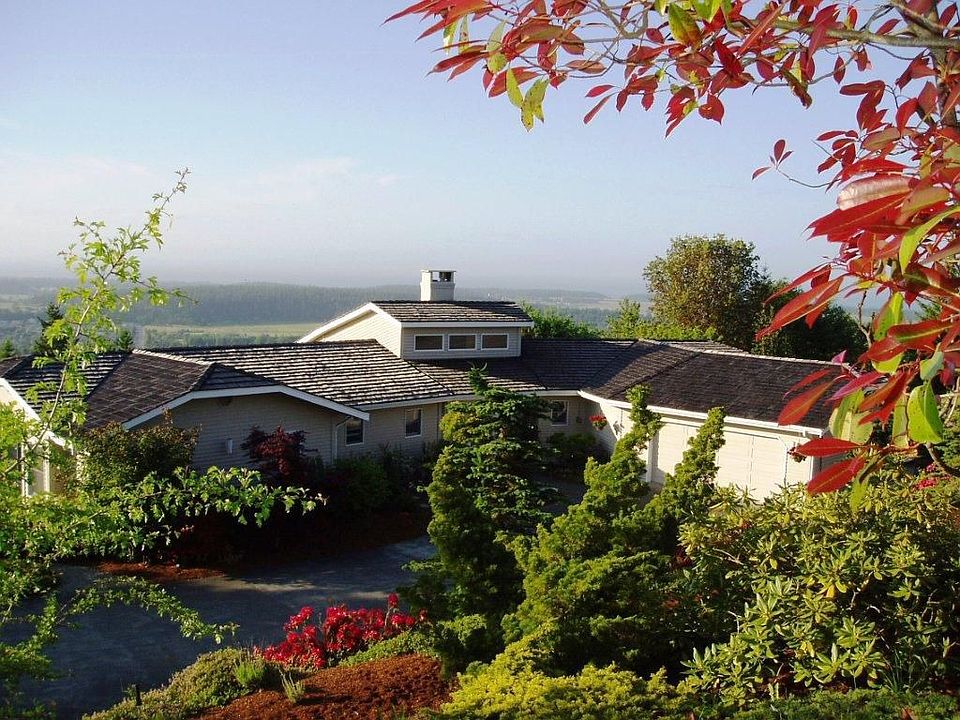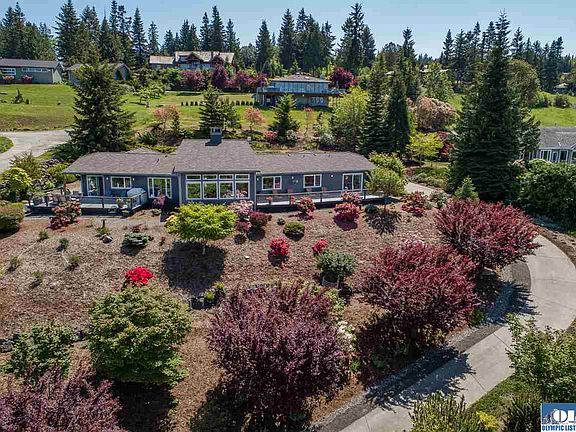 Gorgeous single-level, water view home on Bell Hill. Reached by a winding driveway lined with Cherry Blossoms, this custom home provides beauty everywhere you turn. Completely remodeled with top of the line materials both inside and out, the home and property are in impeccable condition. New lifetime Decker metal roof that looks like a shake roof, new Hardi-siding, new Trex decks, and new landscaping bursting with color. New: Red Oak floors, baseboard trim, kitchen and den cabinets, new bathrooms and more!