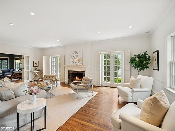 Enjoy lake breezes on quiet coveted lane, steps to Centennial Park, Elder Beach, train, and schools. Classic 5-bedroom, 3.1-bath center entrance colonial offers a wonderful lifestyle, blending timeless design and solid construction with thoughtful modern updates. A gracious foyer highlights a gracious staircase welcomes you into a beautifully flowing floor plan designed for comfortable living and stylish entertaining. The heart of the home is the renovated chef's kitchen featuring high-end appliances, a generous island, skylights, and seamless access to the comfortable family room. Here, custom wood bookcases and built-ins, create a warm, sophisticated atmosphere for relaxing or hosting guests. The grandly scaled living room with gorgeous mouldings, is anchored by a handsome fireplace with an elegant mantel, while the formal dining room-complete with a well-equipped butler's pantry-makes entertaining a delight. Upstairs is serene primary suite with a walk-in closet and luxurious bath as well as three additional bedrooms; two share a bath and one potential office is en suite.. Remarkable third floor retreat offers a new construction feel with soaring ceilings, skylights, built-ins in the office, and a fifth bedroom-ideal for a creative space, or guest suite. With a lovely landscaped back yard with brick patio and grassy play area plus an attached garage, and a location that can't be beat-just steps from the beach, parks, and top-rated New Trier and Greeley schools.