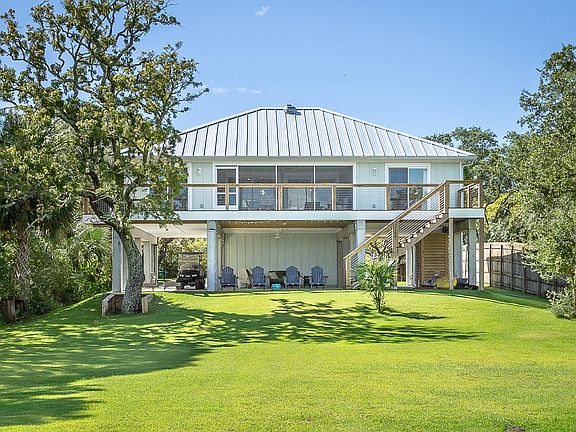 Stunning 2024 New Construction Waterfront Home at Alligator Point. Welcome to 143 Harbor Circle — a one-of-a-kind coastal retreat where modern design meets the laid-back luxury of waterfront living. This thoughtfully designed home features contemporary coastal architecture, premium finishes throughout, and a serene natural setting that makes every day feel like a getaway. Situated on a high-elevation lot surrounded by mature trees, the property boasts a beautifully landscaped yard with lush Zoysia grass and a full irrigation system. Built to last, the home is elevated on concrete pilings and topped with a durable metal roof. Inside, you’ll find an open floor plan with sleek, modern design, quartz countertops, and custom cabinetry throughout. The spacious primary suite offers a luxurious en-suite bathroom, while the soundproof bedrooms create quiet, private spaces perfect for rest and relaxation. A screened-in upstairs porch invites you to unwind and enjoy the coastal breezes. The finished lower level includes a private outdoor shower, a large locking storage room, and flexible space ideal for a variety of uses including multi-vehicle parking. The home also includes a reinforced concrete pad under the structure, a solar-powered privacy gate, and an exterior camera monitoring system for added security. It features a built-in EV charger and is pre-wired for a future cargo lift, offering both comfort and future-ready convenience. Waterfront living is even better with a 250-foot dock constructed with deep pilings and a covered boathouse, designed for boating, fishing, and enjoying the water. The dock includes two boat lifts: a heavy-duty 13,000-pound lift for larger vessels and a 1,500-pound swivel lift perfect for personal watercraft or smaller boats. Panoramic water views and deep-water access make this home a boater’s dream. Located in the heart of Alligator Point, this home offers both privacy and proximity to local attractions. Bald Point State Park, the local marina, and The Salty Pearl Tiki Hut are just minutes away. Nearby towns like Crawfordville, Panacea, Carrabelle, and Apalachicola provide great options for dining, shopping, and exploring Florida’s Forgotten Coast. An optional furnishings package is available, making this a truly move-in-ready waterfront retreat. Don’t miss the opportunity to experience modern coastal living at its finest.