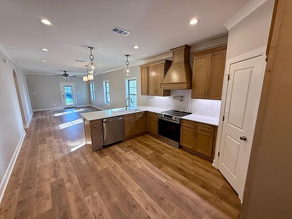 Beautiful new build in West Tupelo's Harvesters Square neighborhood. Offering 1,700 sq ft with 3BR/2BA and a large office, this home blends thoughtful design with modern style. The open living/kitchen area is accented by arched hallway entries and features custom cabinets, quartz countertops, designer lighting, tile backsplash, pot filler, and upscale finishes. The master suite boasts a custom tile shower and walk-in closet. Added features include 2x6 wall construction, custom closets, under-cabinet lighting, a designer range hood, premium wood laminate flooring, and a floored attic storage area. Member of Sidco Construction LLC is an MS Licensed Real Estate Broker. All information is deemed reliable but not guaranteed.