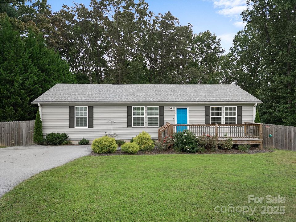 Welcome to this inviting 3BR/2BA home featuring an open floor plan with a split-bedroom design for added comfort and privacy. The kitchen includes a center island and connects easily to the living and dining areas. The primary suite comes with a walk-in closet and a full bath complete with a double vanity, soaking tub, and separate shower. Enjoy outdoor living on the large front porch or the back deck overlooking the fenced yard. An outbuilding with electricity provides extra storage or workshop options. Conveniently located close to shopping, dining, and I-26, this home blends comfort with convenience.
