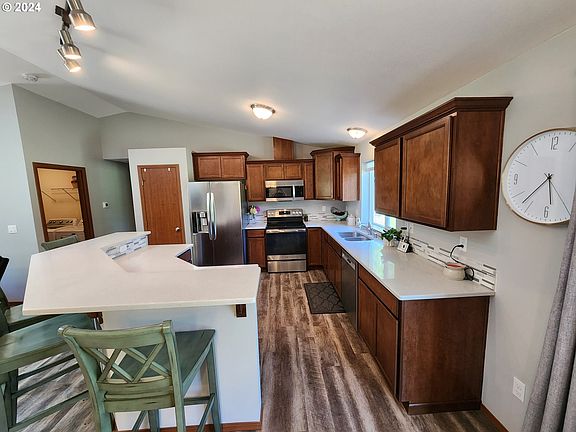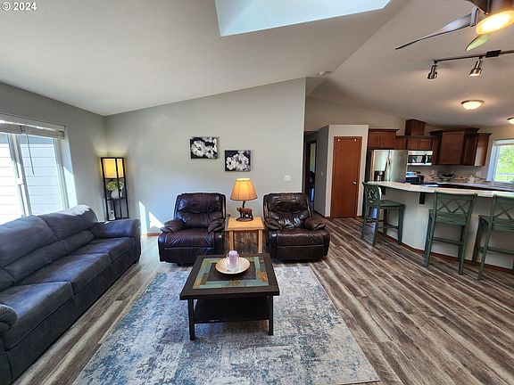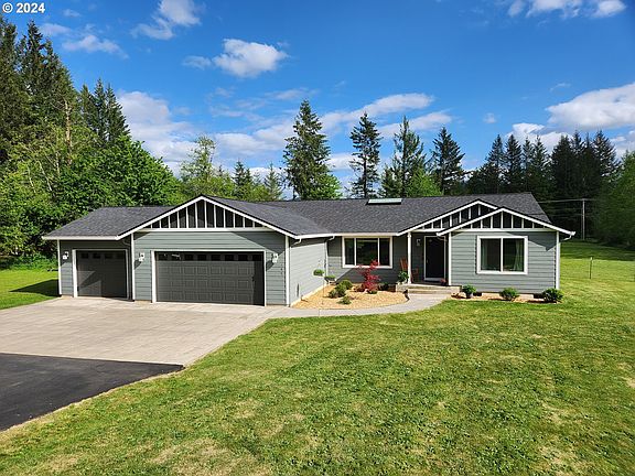 Welcome to your dream retreat nestled on 2 acres of picturesque landscape with a BRAND NEW LOOK! This charming one-level home boasts 3 bedrooms, 2 bathrooms, an inviting open concept great room, and fresh interior and exterior paint. Step inside to discover the heart of the home, featuring a grand open concept with vaulted ceilings and three skylights to bring in radiant natural light. The updated finishes include sleek quartz counters and luxurious vinyl plank flooring, creating a seamless blend of style and durability. The kitchen, equipped with stainless steel appliances, ample cabinetry and pantry. The primary suite features a large walk-in closet and a private Ensuite bath, with soaking tub, walk-in showing, double sinks, and two extra deep linen closets. Two additional bedrooms, each generously sized, provide versatility for guests, a home office, or hobbies. Beyond the interior lies the expansive outdoor space with almost 2 acres of level usable space. Just off the dining room, there is a gazebo covered patio space and several fruit trees including, apple, peaches, fig, and pear! This property is also prepped and wired for a future shop. In addition to the numerous opportunities with the land, the 3-car garage offers ample space for vehicles, toys, storage and other projects. This property is located just minutes away from the library and water recreation! Don't miss the chance to make this your own slice of PNW paradise! Schedule your private tour today.