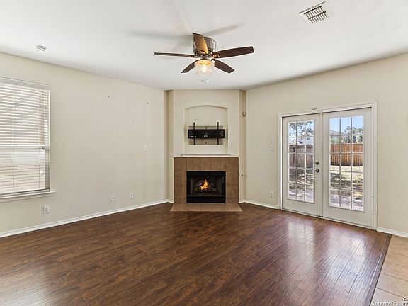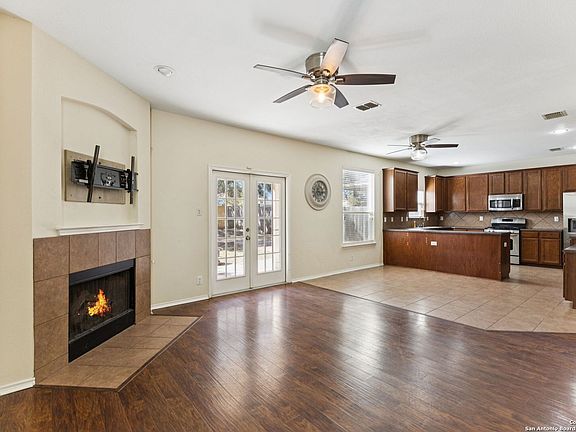 Enter through a welcoming foyer into a versatile front room with glass French doors - ideal as a home office. The open-concept living, dining, and kitchen area flows seamlessly, with the kitchen (refrigerator included) offering ample cabinetry and a large pantry/laundry room combination right off the garage, plus a convenient half bath nearby. Enjoy cozy evenings by the fireplace or entertain on the expansive back patio, shaded by a magnificent mature tree in the private backyard. The roof was just replaced in September 2025 on this well-maintained 2009-built home. Upstairs, discover the spacious primary suite with an en suite bath featuring a separate shower and soaking tub, plus a large walk-in closet. Two additional bedrooms share a full bath with a shower/tub combo and a generous loft area perfect for relaxation, play, or a second living space. Located in the highly sought-after Redbird Ranch community - minutes from Lackland AFB and abundant shopping - a new HEB is slated to open just one mile away early 2026. Enjoy community pools, parks, trails, and top-rated schools in this military-friendly neighborhood.