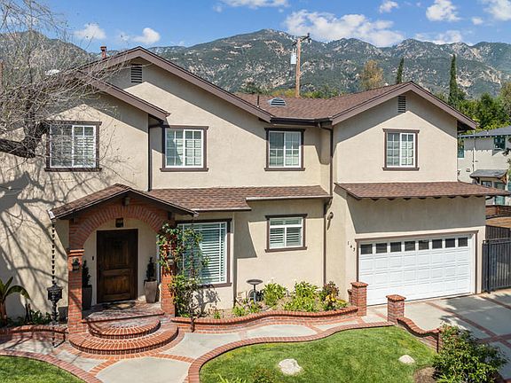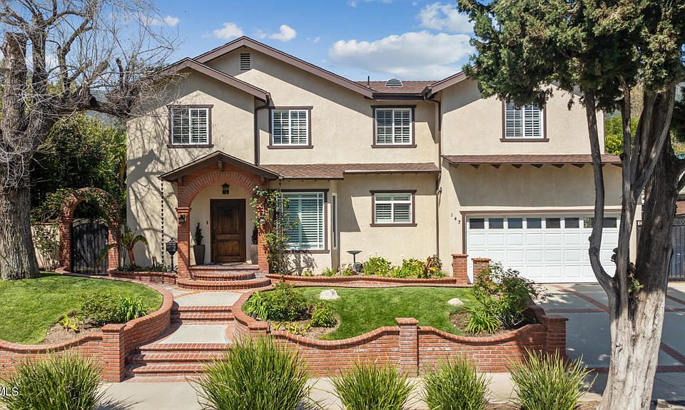 Located on a quiet cul-de-sac nearby local schools, parks, and numerous hiking/biking trails, this inviting home proves the adage that location is everything. Set in an established neighborhood with sidewalks and mature trees, the home offers a turnkey interior with attractive hardwood and tile floors, a resort-like backyard with a pool, and peaceful area views. Built in 1949 and refined by the current owner of 30 years, the home combines modern amenities with classic architectural features, including arched doorways, built-in shelving and crown moldings. A living room with a fireplace and a separate dining room create a relaxing venue for formal occasions; a main floor bedroom/office that opens to the backyard adds functionality. The family room is a focal point, as it has vaulted hardwood ceilings, a fireplace and French doors that connect to the outdoor living areas. Showcasing the latest technology and style, the kitchen boasts quartz countertops, recessed lighting, open shelves and a stone backsplash. White custom cabinets, some with glass insets, and modern Stainless Steel appliances, including a gas range, add to the appeal. The well-conceived floor plan is further enhanced by dual primary suites, one of which features a retreat and a spacious covered balcony with views. The main primary suite bathroom has intricate custom tile, Pebble stone, a wall of custom cabinets and large skylights, making it a cheerful place to start the day.  With an expansive tile patio, a large pergola that is attached to the home, mature landscaping and a built-in bar area, the secluded backyard is a beautiful extension of the living space. Other features include walk-in closets, high ceilings, solar panels, water softening system and an attached two car garage. Situated in close proximity to what may be the best hiking/biking trails in LA County, in a sought-after neighborhood that offers easy access to shops, golf courses and restaurants, this is the ultimate legacy property.
