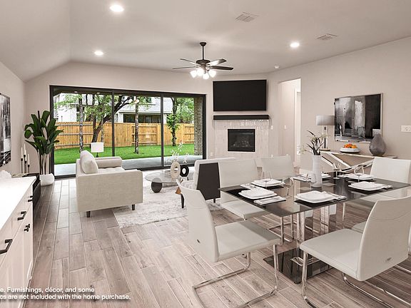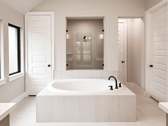 Inviting entry with 16-foot ceiling. Entry extends to the kitchen, family room and dining area. Generous family room features a wood mantel fireplace and sliding glass door. Kitchen features an island with built-in seating space, 5-burner gas cooktop and a walk-in pantry. Home office with French door entry just off the family room. Primary suite features a large bedroom, double door entry to primary bathroom, dual vanities, garden tub, separate glass enclosed shower, two large walk-in closets and private access to utility room. Media room with French door entry just off the kitchen. Private guest suite with full bathroom and a walk-in closet. Secondary bedrooms, a half bathroom and a Hollywood bathroom completes this home. Extended covered backyard patio. Mud room. Three-car split garage. Representative Images. Features and specifications may vary by community.