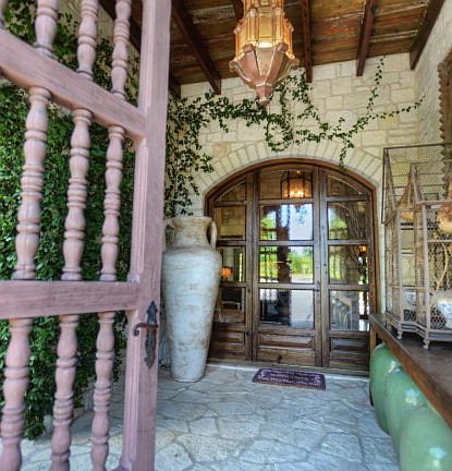 Chimney Hill Ranch 172 Acres Waterfront of 2,100 Linear feet of blue/green Lower Turtle Creek 8-10 feet deep; located just 6 miles SE of Kerrville. Massive hand laid stone entry; views that open to premium bottom grassy fields, grand trees & huge bluffs. Game fence w/exotic & native wildlife in lush pastures. Main home is a fabulous Hill Country home with a strong Spanish Colonial influence.