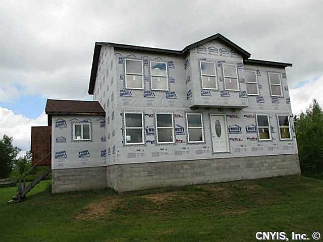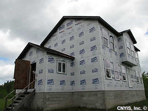 This is a unfinished home with no plumbing or electrical installed yet. The hard part is done. The roof is on, the cellar is blocked in, doors and windows have been installed, and the framing is done. There is a new well and a existing septic and power source to the other home. This home is at the stage were partitions can be moved and you can make this 2100 Square Foot home the way you want it. There is a existing three bedroom home on sight that is very liveable while you finish your new home. It has a wood stove, new furnace, and well system that can transferred to the new home.