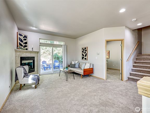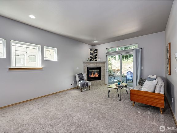 Fantastic townhome-style living with 3 bedrooms and 2.5 baths. Enjoy fresh updates including brand-new carpet and interior paint. This newer construction home features vinyl windows, a cozy gas fireplace in the great room, and a private backyard patio with green space behind. Upstairs, take in peek-a-boo views of Mt. Rainier. The spacious 2-car attached garage provides convenience, while the location is just minutes to PSNS, Seattle fast/auto ferries & adjacent to Forest Ridge Park! Low maintenance living, move-in ready and perfectly situated!