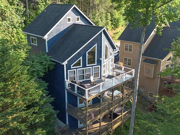 Welcome to Blue Moon, a stunning lakefront retreat in the exclusive Lakeside Estates community on Norris Lake. This fully furnished home is designed for comfort, entertainment, and effortless lake living - perfect as a family getaway, multi-generational retreat, or turnkey short-term rental investment. Sleeping 22 guests comfortably, this spacious property features updated flooring, composite decking, a new hot tub, and a commercial ice maker. The home comes completely furnished and ready to enjoy immediately or rent seamlessly for instant income potential. Inside, Blue Moon offers a variety of accommodations, including four King bedrooms, one Queen bedroom, one Full bedroom, and a bunk room with Full-over-Full and Twin-over-Full bunks - perfect for large families and guests. The great room boasts soaring ceilings, floor-to-ceiling windows, and a flatscreen TV with surround sound, creating an ideal space for gathering and enjoying panoramic lake views. The lower level features a spacious game area with ping pong, additional entertainment space, and a flatscreen TV. The fully equipped kitchen includes stainless steel appliances, a large pantry, cookware for up to 30 guests, and a generous dining area perfect for hosting. Additional amenities include a full-service laundry room, abundant storage, and multiple outdoor gathering spaces. Step outside to your own private 900 sq ft double-decker dock with a swim platform accommodating up to three boats. Enjoy a slide, jump gate, and a fire pit deck with seating for six - perfect for evenings by the water. A boat ramp and trailer storage add convenience for lake access. The main-level deck features two new grills, a patio table for outdoor dining, and beautiful lake views, while the walkout level includes the new hot tub and commercial ice maker for easy entertaining. Ideally located near Sugar Hollow Marina, Deerfield Resort, The Tiki Hut, and Springs Dock, this home offers the perfect blend of lakefront fun and relaxation. Whether you're looking to unwind lakeside, host family gatherings, or maximize rental potential, Blue Moon offers it all - luxury, comfort, and the best of Norris Lake living in one unforgettable package.