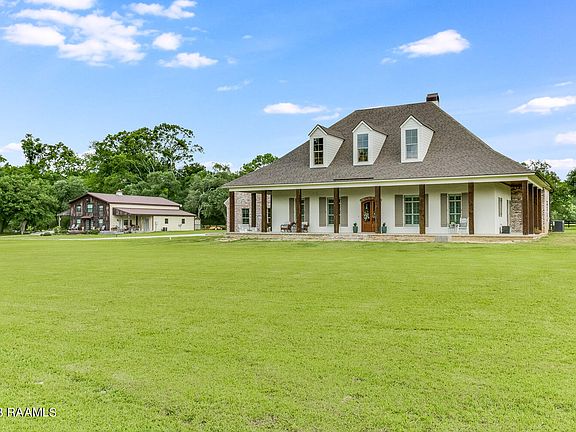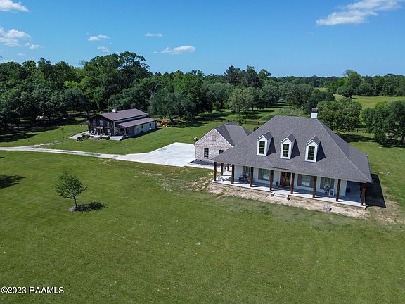 Newly built 3,225 sqft Acadian-French style home sitting on 17+ Acres for sale!! This property also has a 1,300 square foot 2-story FARMHOUSE APARTMENT for your guests which is equipped with a full kitchen, 2 bedrooms, 1.5 bathrooms, laundry room, and an attached workshop with extra storage! Located in Sunset just minutes off of I-49, this property is part of the private Subdivision of Oakridge Ranchette. As you drive onto the property, you are welcomed by a private road lined with beautiful live oak trees, along with a STOCKED POND and creosote fence around the property. Built in September 2022, the main house features lots of Southern charm such as a large wrap-around front porch, cypress columns, and functional hurricane shutters!The interior of the main home features Old Chicago split brick and wood flooring in most of the home, plantation shutters, cypress beams, brick fireplace, triple crown moldings, reclaimed wood vaulted ceilings in the foyer, a library/office, and a hidden room for guns or tactical storage! The kitchen is a chef's dream with a gas stove, a built-in custom fridge/freezer, double ovens, a walk-in pantry, and large island that seats 5, and a cozy breakfast nook. The master bedroom features high vaulted ceilings, while the master bath includes a large soaking tub and separate zero entry walk-in shower. Every room has a walk-in closet with lots of built-ins. This smart home even has indoor/outdoor built-in SURROUND SOUND and an alarm system with multiple surveillance cameras. Additional features include a tankless hot water heater, soffit outlets for Christmas lights, an oversized 2-car garage with an attached AC controlled storage room, and even a woodworking shop with a 14ft x 16ft roll up door. The main home is prepped and ready for a whole home generator to be installed. The front and backyard views alone are much to be desired! Private home tours are available, call to schedule yours today!!The interior of the main home features Old Chicago split brick and wood flooring in most of the home, plantation shutters, cypress beams, brick fireplace, triple crown moldings, reclaimed wood vaulted ceilings in the foyer, a library/office, and a hidden room for guns or tactical storage! The kitchen is a chef's dream with a gas stove, a built-in custom fridge/freezer, double ovens, a walk-in pantry, and large island that seats 5, and a cozy breakfast nook. The master bedroom features high vaulted ceilings, while the master bath includes a large soaking tub and separate zero entry walk-in shower. Every room has a walk-in closet with lots of built-ins. This smart home even has indoor/outdoor built-in SURROUND SOUND and an alarm system with multiple surveillance cameras. Additional features include a tankless hot water heater, soffit outlets for Christmas lights, an oversized 2-car garage with an attached AC controlled storage room, and even a woodworking shop with a 14ft x 16ft roll up door. The main home is prepped and ready for a whole home generator to be installed. The front and backyard views alone are much to be desired! Private home tours are available, call to schedule yours today!! The interior of the main home features Old Chicago split brick and wood flooring in most of the home, plantation shutters, cypress beams, brick fireplace, triple crown moldings, reclaimed wood vaulted ceilings in the foyer, a library/office, and a hidden room for guns or tactical storage! The kitchen is a chef's dream with a gas stove, a built-in custom fridge/freezer, double ovens, a walk-in pantry, and large island that seats 5, and a cozy breakfast nook. The master bedroom features high vaulted ceilings, while the master bath includes a large soaking tub and separate zero entry walk-in shower. Every room has a walk-in closet with lots of built-ins. This smart home even has indoor/outdoor built-in SURROUND SOUND and an alarm system with multiple surveillance cameras. Additional features include a tankless hot water heater, soffit outlets for Christmas lights, an oversized 2-car garage with an attached AC controlled storage room, and even a woodworking shop with a 14ft x 16ft roll up door. The main home is prepped and ready for a whole home generator to be installed. The front and backyard views alone are much to be desired! Private home tours are available, call to schedule yours today!!