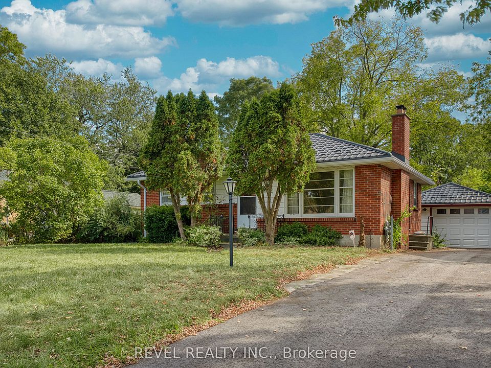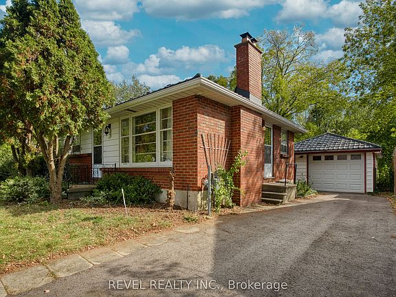 Large lotSolid brick bungalowDetached garageBacking onto green spaceMetal roof