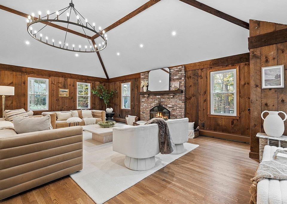 Thoughtfully reimagined for todays lifestyle! This home blends the inviting warmth of a country farmhouse with rich wood tones and modernized elements that feel both timeless and refined. The open layout across the main level flows effortlessly from the kitchenanchored by an oversized island and designated dining areato a spacious family room with vaulted ceilings, featuring exposed wood beams & a fireplace that define the heart of the home. A light-filled den with a built-in wet bar overlooks the serene, private backyard & opens to the back deckperfect for entertaining or relaxing year-round. A full bath + a dedicated office complete the main floor. Upstairs, you'll find 4 bedrooms, including the primary featuring a W.I.C and en-suite bathroom with heated floors. The finished lower level provides a flexible space w/ direct access to garage + mudroom. Move-in ready with a NEW roof, NEW windows, & several updates throughoutready for you to enjoy this holiday season!