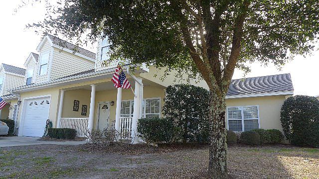 End unit with a lot of privacy and light that comes in from additional windows. Three nice sized bedrooms, each with its own bathroom. Great room is open to kitchen and dining - counter bar and built in cabinet divide the spaces and add to storage areas. Master has double walk-in closets and bath with large shower. Bright sunroom adjoins the master bedroom, rear patio adds to areas for entertaining. Peppertree Crossing is an age 55+ community with wonderful amenities including 2 story clubhouse with game rooms, billiards room, library, office, kitchen and spa. Community also has pool, tennis and putting green. Conveniently located close to the mall, Publix and Walmart - yet this oasis is totally fenced and gated and feels very private and secluded.