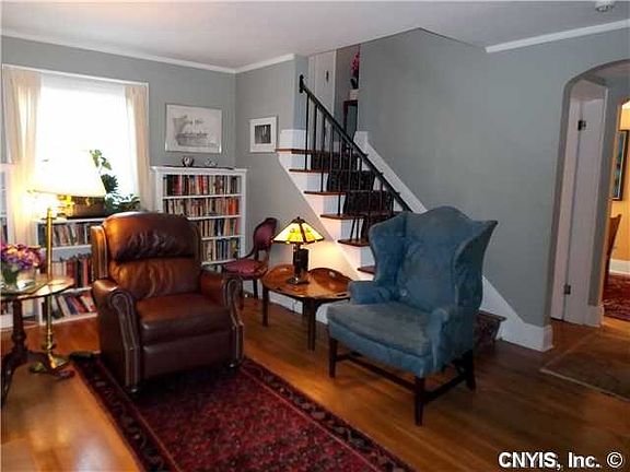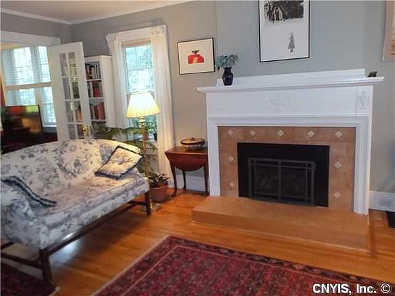Beautiful brick home in a prime Strathmore neighborhood with water views of Hiawatha Lake and skyline views of downtown Syracuse and Syracuse University. Over $40,000 in recent improvements: new roof, rebuilt garage, new A/C, new appliances, bath and kitchen updates. New insulation with low utility bills! Wonderful tree-lined lot with great privacy, large deck off back bedrooms with tree-top views that delight in all seasons and all times of the day. Traditional living room fireplace has a brand new gas insert. Ideal location minutes from downtown, SU, OCC, all hospitals.