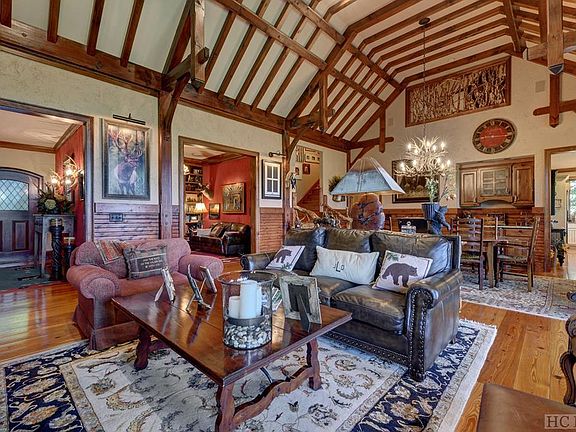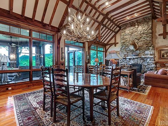 Panoramic Mountain View, Custom 4 BR/5.5 BA home, The spacious main level includes cook's dream kitchen with walk in pantry and laundry room off the kitchen, soaring stone fireplace in the huge great room with large timber beams, large screened porch with fireplace to admire the panoramic views, a study off of the great room, large master suite with additional gas fireplace in the bathroom and jetted tub and separate walk in shower, 2nd en suite guest room with jetted tub, Large dining room with wet bar. Rooms on upper level include a large space perfect for another office or playroom. En-suite guest room with seating area and fireplace and extra space for the kids. Lower level includes family room, complete with stone fireplace and wet bar and access to lower level deck. En-suite guest room, and additional place for workout room or office. Lot's of room to play. Another lower level room would be perfect man cave. Circular drive with waterfall feature in island. Home has generator and fenced yard with doggie door. Perfect for large families.