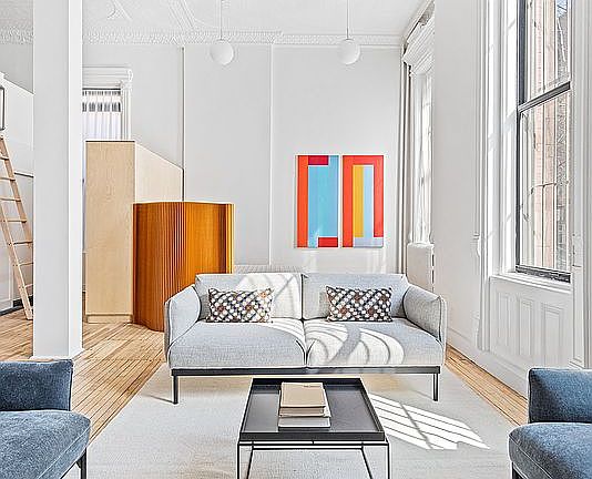 Two-of-a-kind; this architecturally stunning, freshly renovated, live-work loft is available for the first time in a gorgeous pre-war building. Set above street level, this offering includes two architecturally spectacular spaces with separate entrances; a loft for living and a loft for working divided by a common hallway... all for under $1,000 per SF!