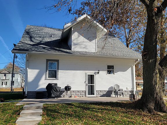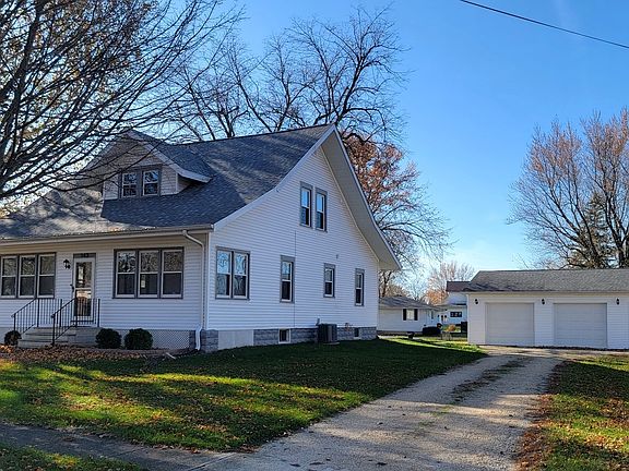 Move right in to this beautifully updated and spacious 4-bedroom, 2-bath home! Situated on a generous oversized lot, it features a spectacular newer (28x40) 3-car detached garage. The heart of the home is the newly updated kitchen, which flows seamlessly into the dining area and large living room. The main floor offers convenience with an enclosed heated front porch, two bedrooms, and a full bath. Upstairs, you'll find two additional bedrooms, a second full bath, and plenty of extra storage. Enjoy the elegance of refinished hardwood floors and trim throughout. Major updates include a newer roof, siding, vinyl windows, sidewalk, and patio area. There is also a full unfinished basement, ready for your future expansion ideas! Located in a small, friendly rural community near the school, park, and downtown area. Don't miss this opportunity to own a truly move-in ready home!