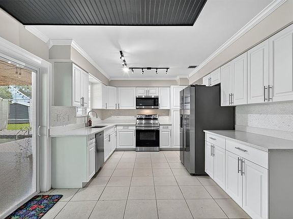 Step into this 3-bedroom, 2-bathroom POOL home, perfectly situated in the heart of Port St. Lucie. Whether you're looking for your home or a property with income-producing potential, this one has it all—including a partially converted garage ideal for an efficiency unit or mother-in-law suite. The home features crown molding, tile flooring, and a chef-inspired kitchen that boasts white shaker cabinets, stainless steel appliances, quartz countertops, a stunning tile backsplash, and a chic breakfast nook with a backlit accent wall and TV—perfect for casual dining or morning coffee.