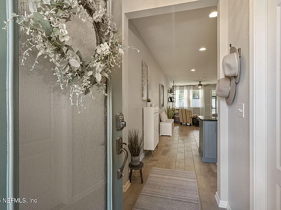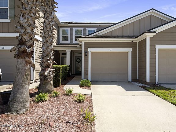 Welcome to 143 Servia Dr in The Palisades at Durbin Crossing! This upgraded 2 bed, 2.5 bath townhome blends modern finishes with a lifestyle you'll love. Inside, enjoy no carpet upstairs or downstairs, stylish accent walls, and an open floor plan filled with natural light. The stunning kitchen showcases dark quartz countertops, stainless steel appliances, and a custom-accented island perfect for entertaining. Upstairs, both bedrooms feature private baths, offering comfort and privacy. Step outside to a screened-in lanai overlooking a MASSIVE backyard—a rare find in townhome living—ideal for pets, play, and gatherings. Living here means access to Durbin Crossing's resort-style pools, fitness centers, sports courts, parks, and trails, all minutes from A-rated schools, shopping, and dining. Move-in ready and designed for today's lifestyle, this home delivers style, space, and unbeatable community amenities.