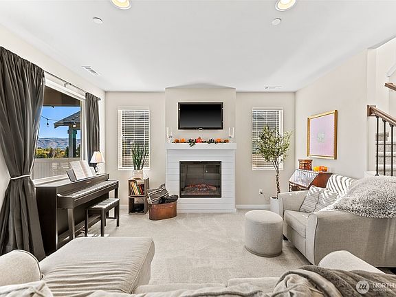 Enjoy low-maintenance living in this centrally located home with mountain & city views. Close to local trails, this home offers the perfect balance of outdoor access and modern comfort. Main floor features a private bedroom with 3/4 bath, ideal for guests. The cozy living room includes an elegant electric fireplace, while the chef-inspired kitchen boasts a huge island, stainless steel appliances, a walk-in pantry and plenty of cabinet space. Upstairs, the primary suite offers en-suite with double sinks, a soaking tub, walk-in shower & large walk-in closet. 3 more bedrooms, a full bath, Bonus and laundry room complete the upper level. Outside a covered patio overlooks the peaceful irrigation canal trail perfect for relaxing or entertaining.