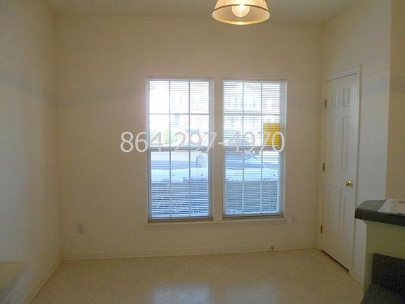 Springs Crossing/Greer/Riverside area- approx. 1450 sq. ft. Townhome- 3BR/2.5 BA. Kitchen/breakfast w/ stove, d/w, microwave and refrigerator furnished; Living Room w/gas log fireplace 10; Private patio w/attached storage room. Laundry closet with washer and dryer furnished. Gas Heat/Central Air. Community Pool and Cabana. one small pet under 20 lbs negotiable with owner approval and pet deposit Non Smoking Environment. Unit Freshly Painted and New Flooring downstairs January 2017.