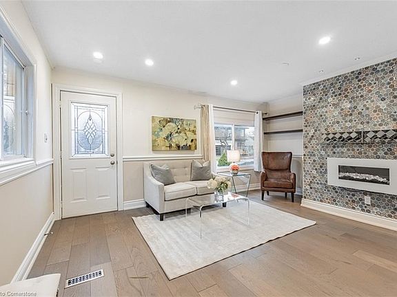 Welcome To 143 Stewart St! Beautifully Maintained 3-Bed, 2-Bath Detached With Over 2100 Sqft Of Living Space On A Deep Lot In The Heart Of Kerr Village! This Unique Home Features An Abundance Of Natural Light Along With Character. Upon Entry, You'll Be Greeted By A Spacious, Sun-Filled Living & Dining Area Featuring Newer Engineered Hardwood Floors & Pot Lights Throughout. The Eye-Catching Mosaic-Tiled Accent Wall Adds A Unique & Vibrant Touch, Making This Space Perfect For Both Relaxation & Entertaining. The Expansive Primary Bedroom Is A True Retreat, Complete With Built-In Mirrored Wardrobes & An Upgraded 4-Piece Ensuite With Double Sinks, Offering Both Style & Convenience. The Open-Concept Kitchen Is A Chefs Dream, Boasting Ample Cabinetry, Quartz Countertops, & A Cozy Breakfast Area, Ideal For Morning Meals! The Upper Level Is Completed With Two Generously Sized Bedrooms, Each With Large Windows. The Stunning Shared Bathroom Features A Standing Shower & A Skylight, Creating A Bright & Airy Atmosphere. The Side Entrance Offers Versatile In-Law Suite Potential, With A Front-Loading Stacked Laundry Perfectly Situated For Shared Use. Whether You're Looking For Additional Living Space Or Rental Income, The Basement Provides Endless Possibilities. The Fully Finished Basement Is An Entertainers Delight, Offering A Massive Living Space & A Home Gym, Perfect For Active Families Or Anyone Who Enjoys Extra Room For Relaxation & Recreation. The Standout Feature Of This Home Is Its Huge Backyard An Entertainers Paradise! Whether You're Hosting Summer Barbecues, Family Gatherings, Or Simply Enjoying The Outdoor Space, This Expansive Lot Offers Everything You Need, With Unobstructed Access To The Backyard From The Side Of The Home. Located In The Vibrant Kerr Village, With New Custom Homes All Around The Area, You're Just Moments Away From Shops, Restaurants, Parks, & The GO Station.