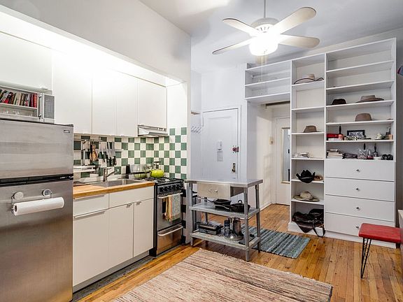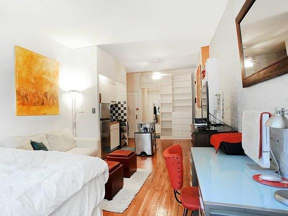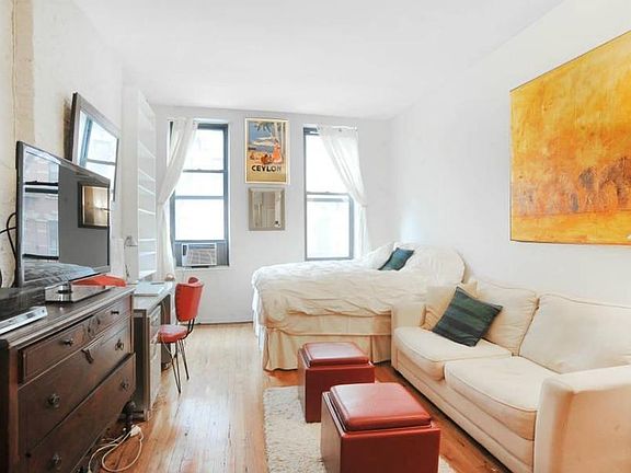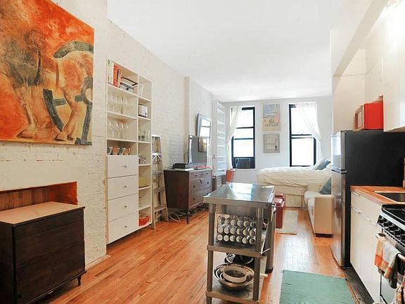 Large Loft Studio on 2nd floor with exposed brick and HIGH ceilings is available for sale on one of the best blocks in SoHo. This apartment comes with walk-in closet plus extra storage space. Decorative fire place. Perfect place to call home. It is located on one of the most desired blocks in SoHo. Old school block with cafes, bakeries, butcher, best restaurants. Right on the border with West Village & Greenwich Village. Close to all transportation. The building has a beautiful common garden with peach and apricot trees. Bicycle storage is available. Co-purchase, parents' purchase, pied-e-terre are allowed. Unlimited sublet policy after 2 years occupancy.