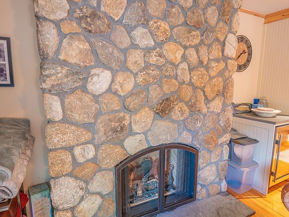 Beautiful rustic log sided chalet in Wilmington VT, just a short drive to the village of Wilmington, lakes, and Mount Snow ski resort. This private location is easily accessible off a paved road and is conveniently nearby to the Hogback lookout, Molly Stark state park for great hiking, and Beer Naked Brewery, all with direct snowmobile trail access to all. Inside the home you will find gorgeous upgrades throughout, featuring a large open concept floor plan, beautiful natural light and exposed woodwork, a custom kitchen with soapstone counters and stainless appliances, a large stone hearth with gas fireplace, vaulted upstairs primary suite with jack and jill bath to a guest room, 2 main floor guest rooms near both a half bath and a full bath, all with tiled floors and showers, and a spacious mudroom entry for gear storage in all seasons. There is also a good size deck for entertaining, a detached garage for toys, and ample parking on the level lot. A very nice contender for investment and vacations.