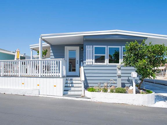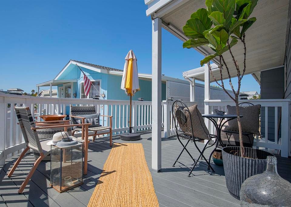 This reimagined home brings indoor and outdoor living together; this is a one-of-a-kind property that will not disappoint. A total of 1,084 square feet (884 sq ft with an attached 200 sq ft sunroom), you get ample space for this 2 bedroom, 2 bath with a bonus den/utility room. Located in San Luis Rey Homes. This is a Resident OWNED 55 + Community, land ownership is involved. The HOA fee is $175/Mo and includes trash, sewer, water & park maintenance. Sit on the trex wrap around deck as you enjoy the cool breezes for one of your many outdoor spaces. This corner lot gives you space to relax outside, plant and maintain a garden, or enjoy an evening fire on the patio. Then when it's ready to go in you will be welcomed by hard surface flooring throughout, granite countertops, dual paned vinyl windows, newer appliances, recently installed walk-in shower and all the finishing touches that make this place special. This is the one you have been waiting for, don't let this opportunity pass you by.