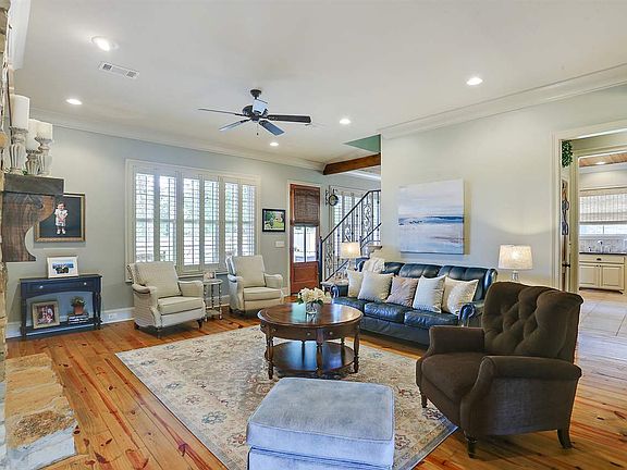 French Acadian Beauty with a Magnificent Kitchen! This custom built 2,900 sq. ft. 4 bedroom/3 bath home has an abundance of upscale finishes throughout. The family cook will love this kitchen! The huge granite island is reason enough to buy this home, but it also has a built-in hutch with pine counter, built-in banquette seating, Kitchen-Aid stainless appliances, pantry and plentiful custom cabinetry. Heart of pine flooring, real wood plantation shutters, tongue and groove ceilings, lavish crown molding, 10' ft. ceilings, gas lanterns, and solid wood doors are standard throughout the home. A floor to ceiling stone fireplace with a wood beam mantle is flanked by two separate built-in entertainment cabinets in this gorgeous living room. The elegant dining room has a built-in china cabinet highlighted by lighted glass front cabinets. The master suite has all the luxuries you would expect in a home of this quality including double vanities, a large walk-in closet, a jetted Jacuzzi tub, and a separate shower. There are 3 oversized bedrooms upstairs each with their own walk-in closet. One of these closets is the size of a bedroom. Two of the bedrooms are adjacent to a Jack and Jill bathroom. The home has been meticulously cared for with most rooms and garage having fresh wall paint, new carpeting has been installed upstairs, and the roof is only a year old. Huge trees shade the fully fenced private backyard. Unwind and entertain your friends or family outside on your spacious wood deck and covered porch. Homes of this size with a kitchen like this and all of these upgraded features are rare in this price range. Call your favorite realtor today to schedule a personal showing before it is too late!