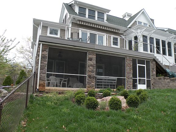 Nantucket cottage-style lakefront luxurious retreat with the mountain and lake so close! Functional floorplan with 3 bedroom suites (each with individual thermostats, jetted tubs in upper 2 suites). Main level Master with massive closets & ceramic handicap accessible walk-in shower. Loft & mezzanine open to great room with magnificent lake and mountain views. Beautiful custom white kitchen with Carera marble countertops; 2 screened porches, main level screened porch is just off kitchen & has gas fireplace with TV cabinet above it. Lovely landscaped yard and sidewalk to private Large 3-slip dock in deep water cove; 272' of lakefront, a beautiful point lot located near channel marker W1 on Smith Mountain Lake. A very nice, private part of the lake, a great home and location. Neighborhood Description Community has a private boat ramp and many year round residents as well as vacation homes.