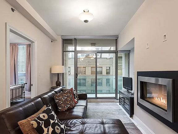 As you enter #8A, you are greeted by a long 32-foot living room and a large south-facing 63 square foot balcony. The bright living room features a gas fireplace for summer and winter splendor. With 9'4 ceiling heights and floor-to-ceiling double pane glass windows, the apartment as a bright and open feel.