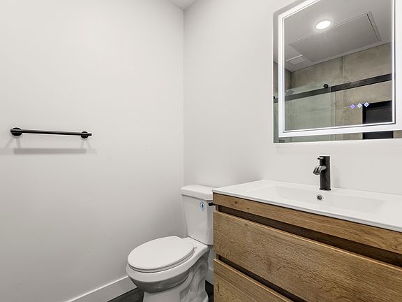 The bathroom includes high-end fixtures, heated floors and elegant vanity. European energy-efficient windows and a new HVAC system keep the unit comfortable throughout the year while helping to reduce utility costs.