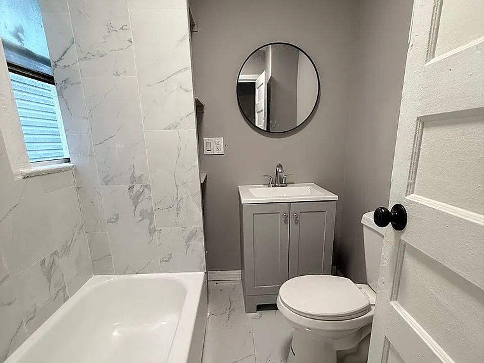 Newly renovated, new flooring! Beautiful modern kitchen with lots of cabinet space. Large living room area. Spacious bedrooms with good closet. Space. Beautiful modern bathroom.