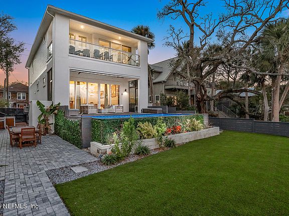 This St Augustine gem blends a modern home with a historic city. This is truly one of a kind. Built in 2021 this home brings a new set of construction standards to the community offering a captivating 3 bedroom 2.5 bathroom. The soaring ceilings, open floor plan and abundance of windows from the moment you walk through the door are absolutely breathtaking. The unbelievable views through the huge sliders offer the sunrise view over Lake Maria Sanchez. The main level offers a huge space for family gatherings blending the activities of the kitchen with the family room and dining room. Upstairs you will find 3 bedrooms, each with its own theme. The master offers a private balconing overlooking the city. The backyard features a large deck overlooking a crystal pool. Sit back and enjoy the sounds and smells of old St Augustine while taking in your morning coffee or sipping on your favorite wine from the local winery. Live and visit confidently with a whole home automatic standby generato