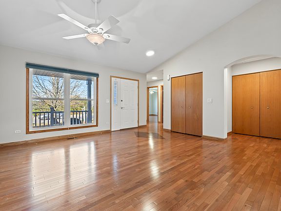 Welcome to this fabulous 3-bedroom ranch home located in the highly sought-after Thompson/Palombi/Grayslake North school district. As you step through the front door, you'll be greeted by gleaming hardwood floors and soaring cathedral ceilings that create a bright and airy atmosphere. The formal dining room flows seamlessly into the living room, featuring a charming see-through wood-burning gas-start fireplace surrounded by built-in bookshelves. The open kitchen overlooks the family room and eating area, providing easy access to the garage, which is equipped with a convenient ramp. From the family room, step into the inviting 3-season sunroom-a favorite retreat for the owners and guests alike, where you can enjoy warmth and sunshine even during winter months. Sliding doors lead you to a lovely brick paver patio, perfect for outdoor gatherings. The spacious primary bedroom boasts multiple closets, including a walk-in, and a luxurious en-suite bathroom featuring a jetted tub, a beautifully tiled shower, and double sinks. The two additional bedrooms and a full bath provide plenty of space for family or guests. To ensure your comfort, the interior bedroom walls have been insulated to minimize noise from the bathrooms and laundry room, allowing for peaceful sleep and relaxation. The unfinished basement is ready for your ideas and has a rough-in for a bathroom. This home is a true gem!