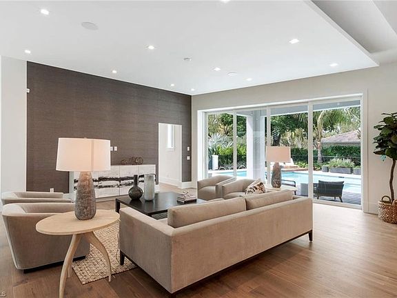 Another Masterpiece by the team of Naples ReDevelopment and Harrell & Co Architects. This 4 ensuite bedroom home has an ensuite study that can be the 5th bedroom, 5 full baths plus a half bath, 1st floor master suite and open great room plan oriented around the peaceful serene outdoor space. Solid Maple cabinetry surrounds the Subzero & Wolf appliances in the open kitchen and the wet bar. Legno Bastone wide plank wood flooring throughout the home compliments the stunning finishes selected by Kelly Godsey Design. Andersen and WinDoor windows and doors open to the outdoor living, which includes 1,300 sq feet of covered living, dining, gas fireplace, built-in grill & cabinets, plus a sunning area and a turf pad all overlooking the picturesque pool, spa and fire bowl feature. The 2nd floor has a western facing veranda which overlooks the landscape designed by Outside Productions. Located 1 block away from the Gulf of Mexico and Lowdermilk Beach Park. This spectacular home of modern elegance is scheduled to be completed in March, 2019.
