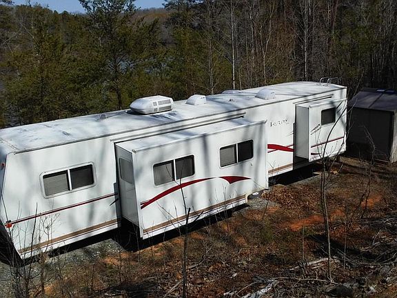 Private waterfront lot on Leesville Lake features 5.47 acres, nice dock, gated private driveway, 2002 Fleetwood RV Camper, 24'x 15' Metal Garage and storage shed. Electric on site connected to RV. Currently no well or septic system. No HOA or POA.