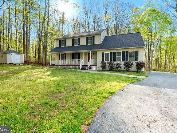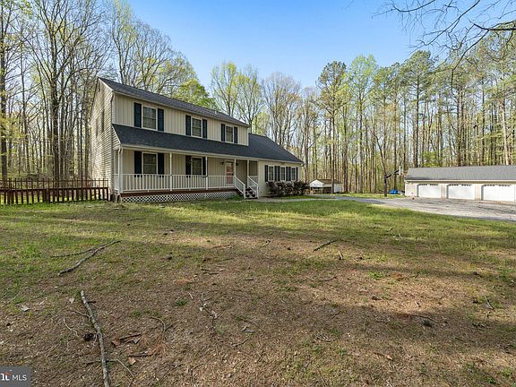 Peaceful & Perfect Move-in-Ready home is ready to be yours. Looking for a Spacious Colonial with 3 finished levels, 3-car detached garage, 4 bedrooms, 3.5 baths and beautiful updates throughout? Look no farther! Situated on almost 4 acres in a quiet and private community with NO HOA! Main level features beautiful hardwood floors throughout, a living room, a separate dining room and kitchen. Off the kitchen opens to a cozy large family room with a wood burning fireplace! The deck overlooks a back yard with lots of trees and a fenced for your pets. Upstairs features hardwood flooring throughout the primary suite and the 3 other bedrooms, a half bathroom and laundry room. The lower level offers a flex room, kitchenette, additional laundry room, a full bathroom with dual showers and sinks, storage and much more. The oversized lot has trails made that’ll be great for private walks or four wheelers, shed and a chicken coop with electric. On the side of the home, conveniently hookup your RV to the electric and plumbing. Conveniently located to shopping, commuter lot, restaurants, community college, Chesapeake Bay and Patient River. This house has everything you are looking for. Don't hesitate to make an appointment for a private tour today!!!