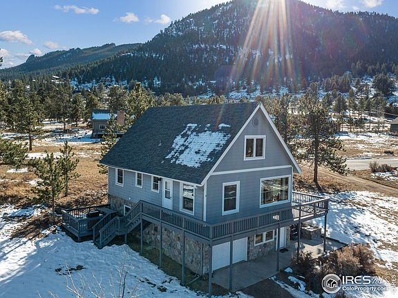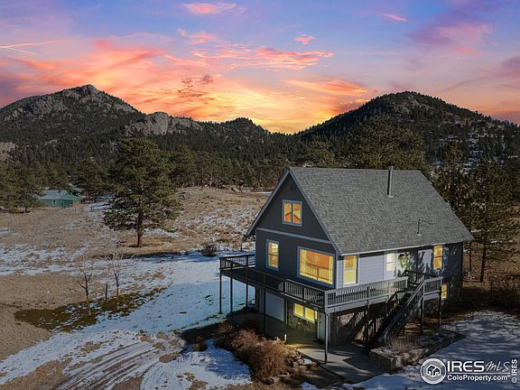 Sweet mountain cottage with transferable STR license! Featuring wonderful outdoor spaces to play & relax across a flat, .7/acre site with plenty of parking. Main level is perfect for gathering with friends & family, plus there is a lower level rec room and a game room (or 4th bedroom). 3 bedrooms and 2 baths provides space for everyone. For the owner there is also a large storage room and a 1-bay garage to store your things, making for an easy mountain getaway when not rented. Great views to the snow-capped peaks and Lumpy Ridge!