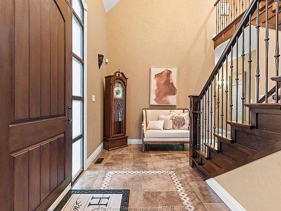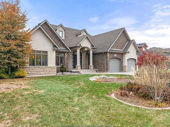 Stunning 2,374 sq ft custom 1.5 storey in LaSalle, kiddie corner from Paul Wilkinson Park. Exceptional curb appeal with whimsical landscaping, exposed aggregate drive, and covered porch with new epoxy finish. Open concept main floor features 9-ft ceilings, a 17x15 dream kitchen with walk-in pantry, dining with elegant backyard views, cozy family room with gas fireplace, 2 bedrooms, full bath, and convenient laundry/mudroom. Private upper-level primary suite with luxury ensuite, double shower & double sinks, and massive custom walk-in closet. Fully finished basement includes family room with gas fireplace, custom wet bar with dishwasher, wine rack, and spot lit liquor shelving, 2 large bedrooms, steam shower bath, and tons of storage. Grade entrance to your private oasis with in ground pool, hot tub, firepit, Euro-shed, mature cedars, 4-zone sprinkler system, and covered porch with ceiling fan. Truly an entertainer’s dream in a prime LaSalle location!