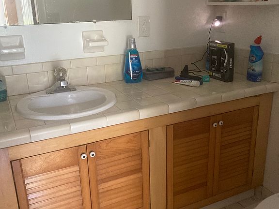 Eat in kitchen with Custom Oak cabinets, all tile Countertops Tile floors throughout